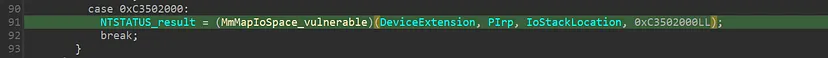 in the driver in an attempt to find vulnerabilities.Found 2 potential vulnerabilities, one which should allow us to exploit memory mapping vulnerability and overwrite our token with the SYSTEM’s token, and another exploit which grants us an “Arbitrary Write” primitive.